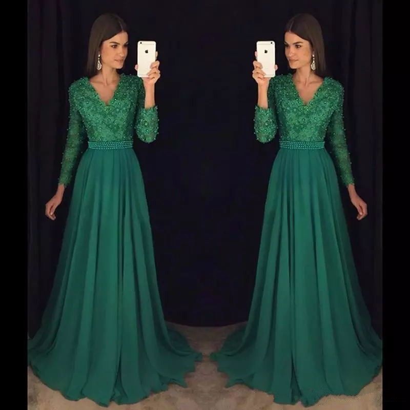 Elegant 2018 Emermaid Green Prom Dresses Long Sleeve V Neck A Line Floor Length Beaded Lace And Chiffon Evening Gowns Special Occasion Kids Prom Dresses Lace Prom Dresses 2015 From Dress 1st 130 66 Dhgate Com