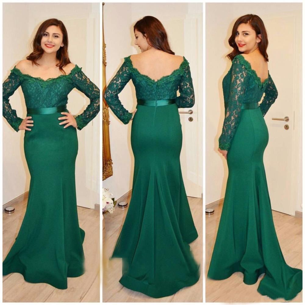 Elegant 2016 Winter Emerald Green Off Shoulder Long Sleeve Mermaid Evening Gowns Cheap Lace And Satin Dress Evening Wear Custom En102615 One Shoulder Evening Dress African Evening Dresses From Dress 1st 130 66 Dhgate Com