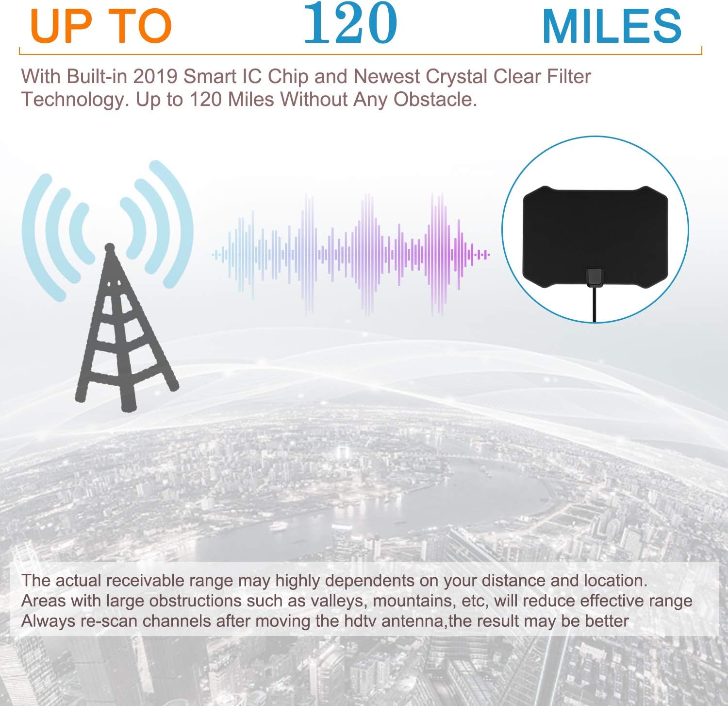 Neueste 2019 Full Hd Verstarkte Smart Tv Digital Indoor Antenne Hdtv Leistungsstarker Bester Verstarker Signalverstarker 60 120 Km Reichweite Unterstutzt 4k 1080p Und Altere Tvs 24 6 M Koaxialkabel Usb Netzadapter Amazon De Audio Hifi