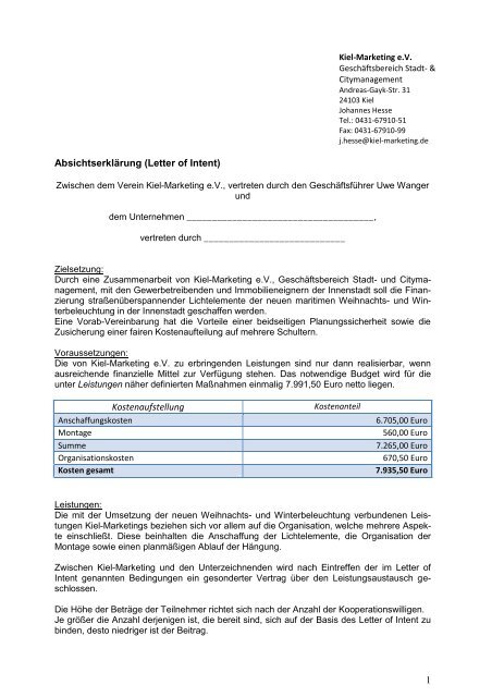 1 Absichtserkla Rung Letter Of Intent Kiel Marketing