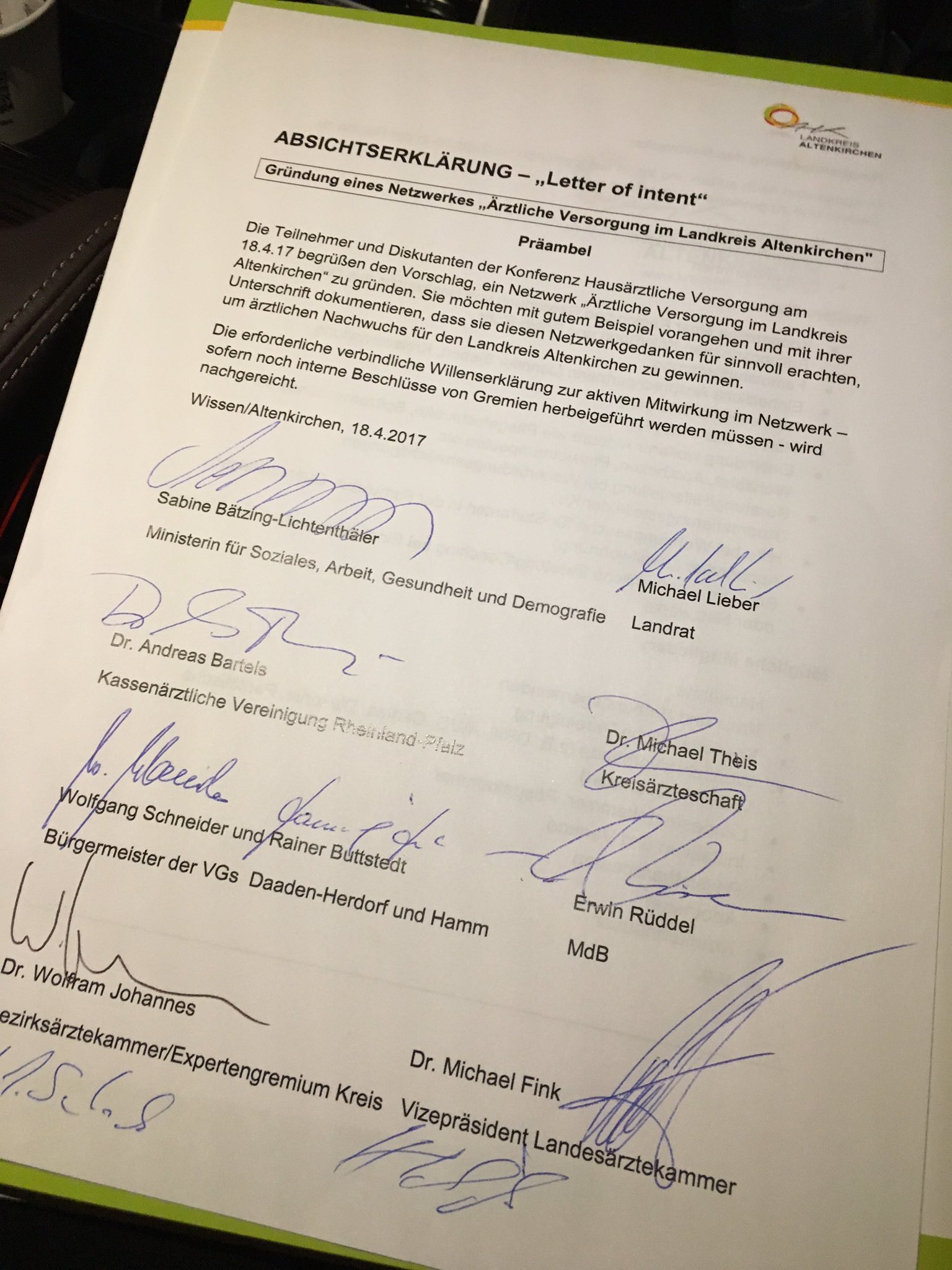 Sabine Batzing On Twitter Gemeinsame Absichtserklarung Zur Grundung Eines Netzwerkes Zur Arztlichen Versorgung Im Kreis Altenkirchen Anl Der 3 Demografiekonferenz Https T Co Cy0t3ln0wc