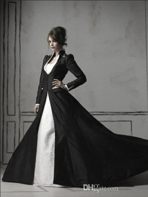 New Medievale Cattedrale Treno Bordare Raso Una Linea Di Abiti Da Sposa Gotico Con Nero Maniche Lunghe Top Abito Da Sposa Per La Sposa Abito Gothic Wedding Dress Wedding Dressdress For Bride Aliexpress