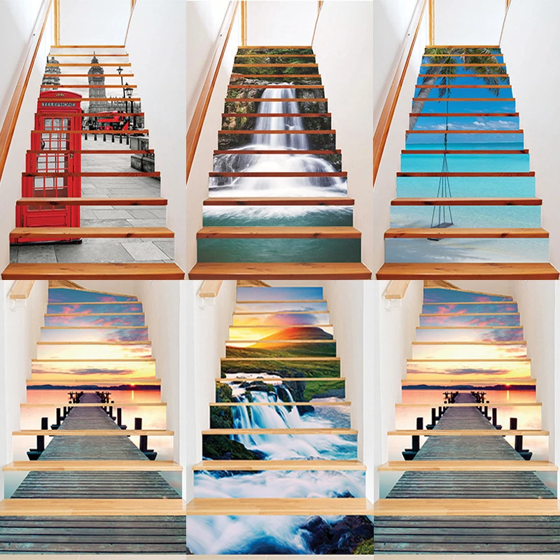 12 best selling creative new staircase stickers creative decoration in Paris, landscape shopping center, cram school|Wall Stickers| - AliExpress